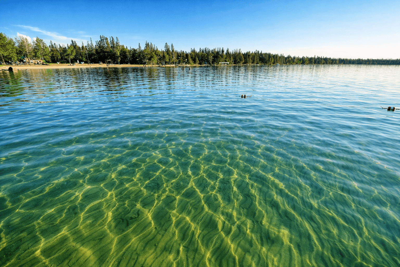 We’re on the beach at Pioneer Bay, inside Clearwater Lake Provincial Park. By car it’s about 25 minutes from The Pas. By bike or boat, even better.